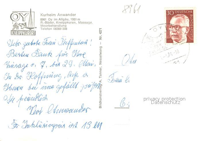 73739784 Oy Bad Mittelberg Oberallgaeu Bayern Kurheim Anwander Sanitaerraeume Gastraeume postalisch gelaufen Erhaltung siehe scans [WerneD78] alte Postkarte Wern Katcode 11110009780128