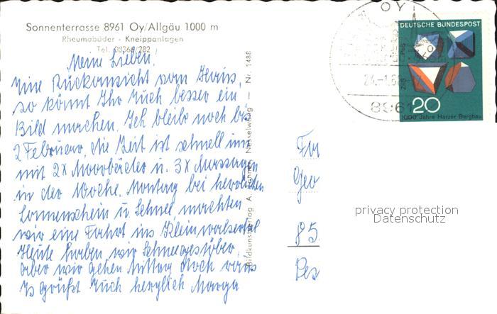 72539593 alte Postkarte Oy Bad Mittelberg Oberallgaeu Bayern Sonnenterrasse 8961 postalisch gelaufen Erhaltung siehe scans [LiesaD40 kt122box] KatCode: 11110009780128