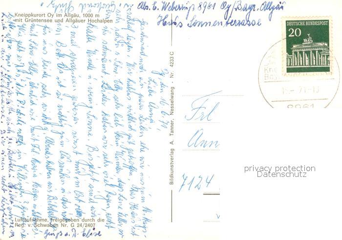 73174710 alte Postkarte Oy Gruentensee Fliegeraufnahme postalisch gelaufen Erhaltung siehe scans [PaolaD17] KatCode: 11110009780128