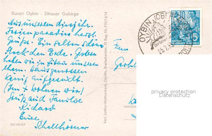 72699593 alte Postkarte Oybin Sachsen Blick vom Scharfenstein postalisch gelaufen Erhaltung siehe scans [LiesaD40] KatCode: 11110014286360