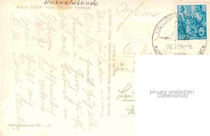 72643642 alte Postkarte Oybin Sachsen Hochwaldbaude postalisch gelaufen Erhaltung siehe scans [AndreD76] KatCode: 11110014286360