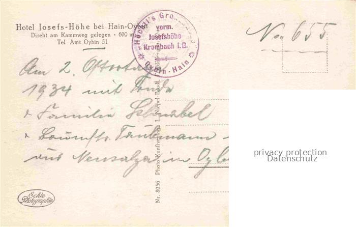 74058142 Oybin Sachsen Hotel Josefs Hoehe bei Hain Oybin postalisch nicht gelaufen Erhaltung siehe scans [WerneD78] KatCode: 11110014286360