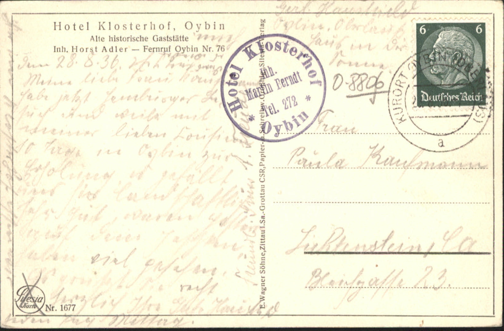 41014655 Oybin Sachsen Hotel Klosterhof postalisch gelaufen Alte Ansichtskarte Postkarte alte Postkarte Katcode 11110014286360
