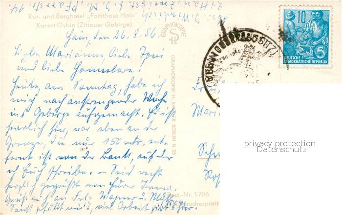 73809891 Oybin Sachsen Kur- und Berghotel Forsthaus Hain Zittauer Gebirge postalisch gelaufen Erhaltung siehe scans [FriedD77] alte Postkarte Frie Katcode 11110014286360