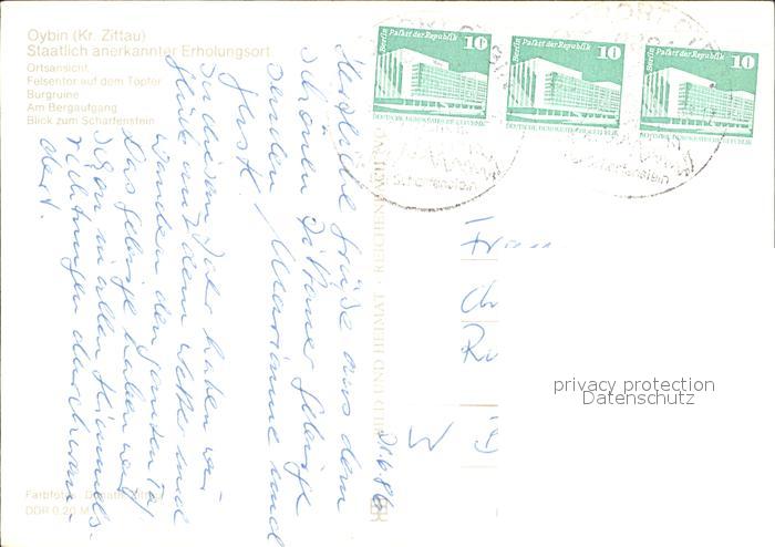 72378326 alte Postkarte Oybin Sachsen Ortsansicht Felsentor Toepfer Burgruine Bergaufgang Scharfenstein postalisch gelaufen Erhaltung siehe scans KatCode: 11110014286360