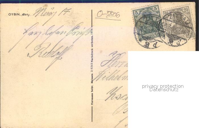42302760 alte Postkarte Oybin Sachsen Panorama Blick vom Berg Oybin nach Oberoybin und Hain postalisch gelaufen Erhaltung siehe scans KatCode: 11110014286360