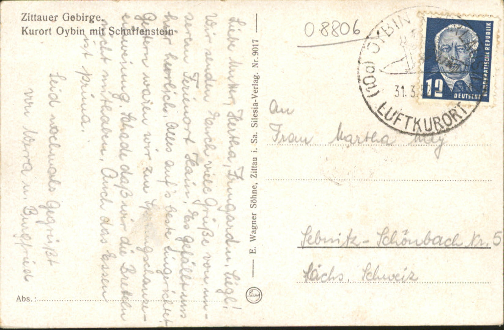 41014364 Oybin Sachsen Scharfenstein postalisch gelaufen Alte Ansichtskarte Postkarte alte Postkarte Katcode 11110014286360