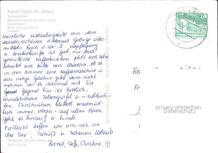 72424130 alte Postkarte Oybin Sachsen Teilansichten Bruetende Henne auf dem Toepfer Klosterruine Hochwaldblick Freibad postalisch gelaufen Erhaltung siehe scans KatCode: 11110014286360