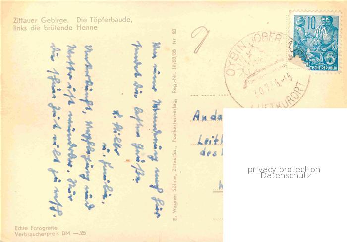 72703405 alte Postkarte Oybin Sachsen Toepferbaude Bruetende Henne Felsen Zittauer Gebirge postalisch gelaufen Erhaltung siehe scans [FriedD77] KatCode: 11110014286360