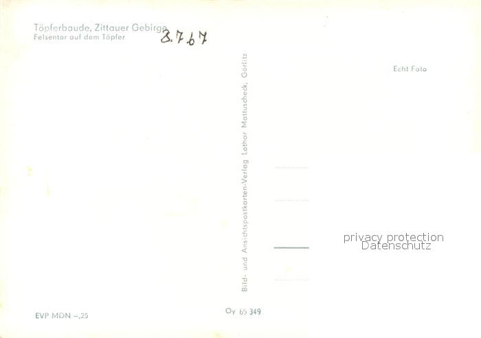 73135677 Oybin Sachsen Toepferbaude Felsentor auf dem Toepfer Zittauer Gebirge Gaststaette Terrasse postalisch nicht gelaufen Erhaltung siehe scans [FriedD77] KatCode: 11110014286360