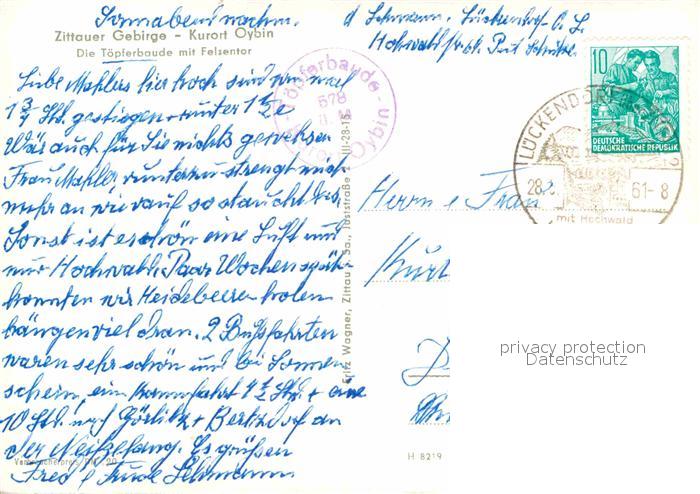 72636341 alte Postkarte Oybin Sachsen Toepferbaude Felsentor postalisch gelaufen Erhaltung siehe scans [AndreD76] KatCode: 11110014286360