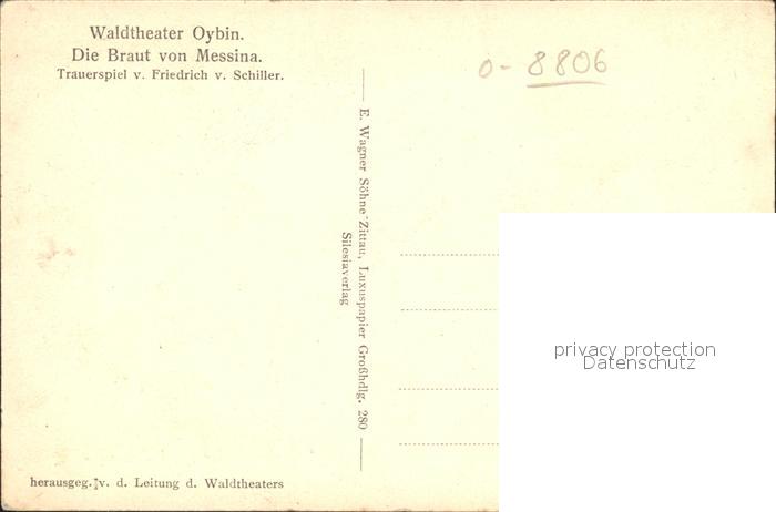 42302002 Oybin Sachsen Waldtheater Die Braut von Messina Trauerspiel Friedrich Schiller postalisch nicht gelaufen Erhaltung siehe scans KatCode: 11110014286360