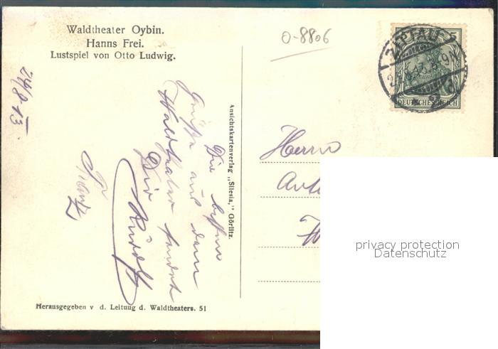 42302721 alte Postkarte Oybin Sachsen Waldtheater Hanns Frei Lustspiel von Otto Ludwig postalisch gelaufen Erhaltung siehe scans KatCode: 11110014286360