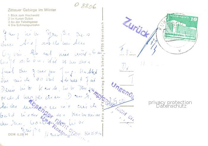72937504 alte Postkarte Oybin Sachsen Winterpanorma Hochwald Zittauer Gebirge Felsengasse Schmalspurbahn postalisch gelaufen Erhaltung siehe scans [FriedD77] KatCode: 11110014286360