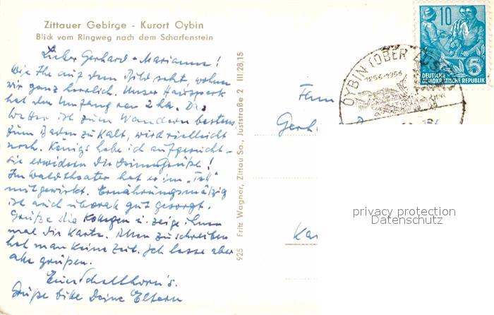 72699595 alte Postkarte Oybin Sachsen Zittauer Gebirge Blick vom Ringweg nach Scharfenstein postalisch gelaufen Erhaltung siehe scans [LiesaD40] KatCode: 11110014286360