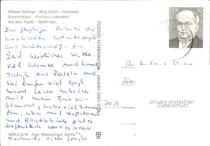 72341957 alte Postkarte Oybin Sachsen Zittauer Gebirge im Winter Hochwald Nonnenfelsen Kurhaus Lueckendorf Toepfer Skilift Hain postalisch gelaufen Erhaltung siehe scans KatCode: 11110014286360