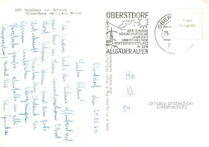 73805020 Oytalhaus 1010m Oberstdorf mit Schneck Himmelhorn und Grossem Wilden postalisch gelaufen Erhaltung siehe scans [FriedD77] alte Postkarte Frie Katcode 11110009780133