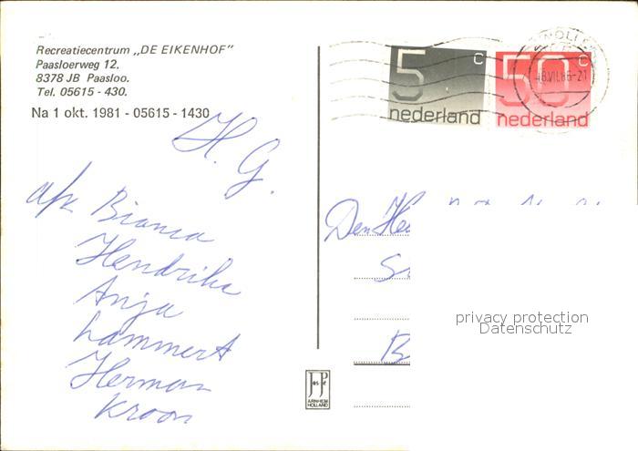 old postcard Paasloo Recreatiecentrum De Eikenhof postalisch gelaufen Erhaltung siehe scans