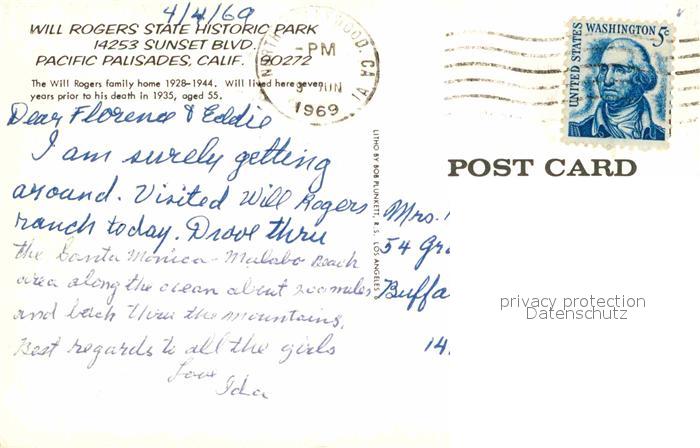 72904667 old postcard Pacific Palasaides Will Rogers State Historic Park Family Home postalisch gelaufen Erhaltung siehe scans [FriedD77] KatCode: 14140050000000