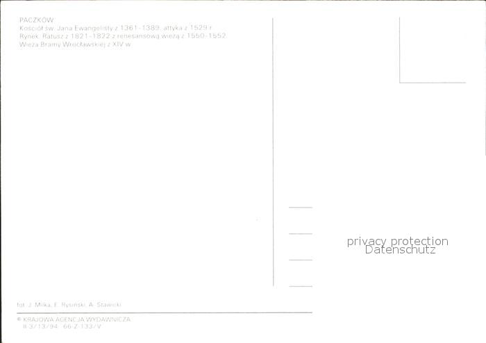 Paczkow Kosciol Rynek Ratusz Wieza Bramy Wroclawskiej Kirche Markt Rathaus postalisch nicht gelaufen Erhaltung siehe scans