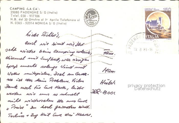old postcard Padenghe Sul Garda Camping postalisch gelaufen Erhaltung siehe scans