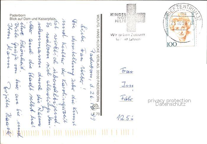 72581942 alte Postkarte Paderborn Dom mit Kaiserpfalz postalisch gelaufen Erhaltung siehe scans [LiesaD40] KatCode: 11110005774032