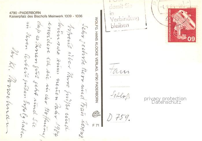 73255462 alte Postkarte Paderborn Kaiserpfalz des Bischofs Meinwerk postalisch gelaufen Erhaltung siehe scans [WerneD78] KatCode: 11110005774032