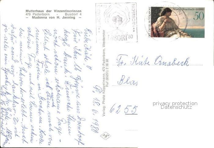 72347737 alte Postkarte Paderborn Madonna von H. Janning Mutterhaus der Vinzentinerinnen postalisch gelaufen Erhaltung siehe scans KatCode: 11110005774032