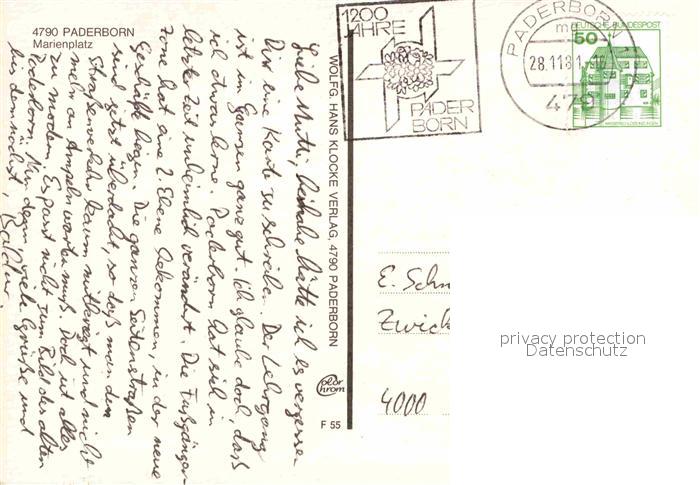 72904570 alte Postkarte Paderborn Marienplatz Brunnen postalisch gelaufen Erhaltung siehe scans [FriedD77] KatCode: 11110005774032