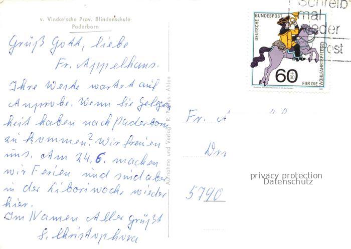 PADERBORN NRW von Vinckesxche Prov Blindenschule postalisch gelaufen Erhaltung siehe scans [WerneD78] alte Postkarte Wern Katcode 11110005774032