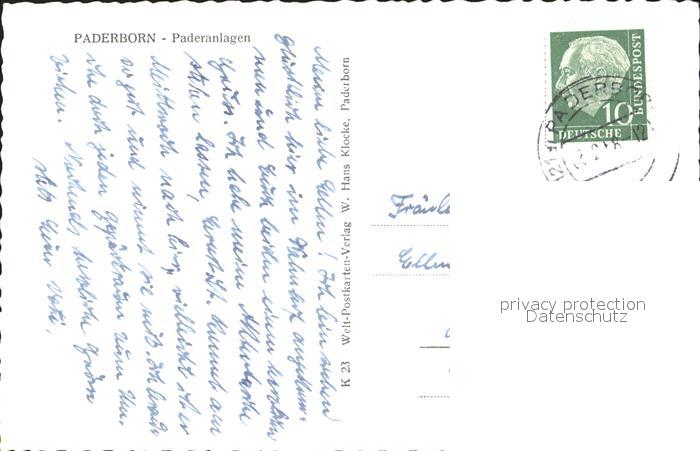 72095998 alte Postkarte Paderborn Paderanlagen postalisch gelaufen Erhaltung siehe scans KatCode: 11110005774032