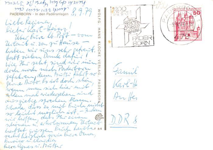 73934129 alte Postkarte Paderborn Paderanlagen postalisch gelaufen Erhaltung siehe scans [WerneD78] KatCode: 11110005774032