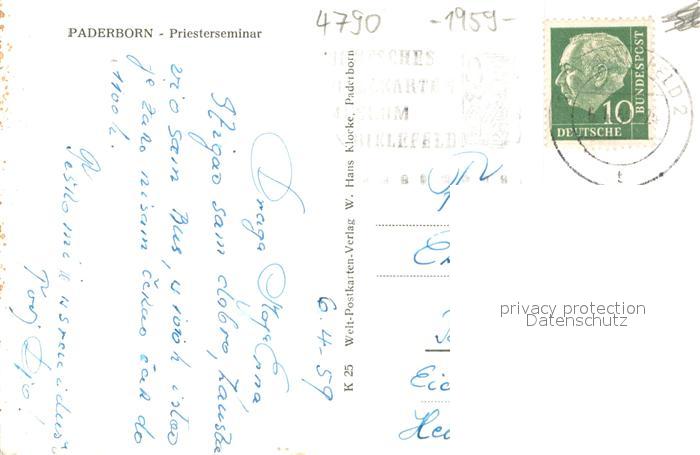 73694428 alte Postkarte Paderborn Priesterseminar postalisch gelaufen Erhaltung siehe scans [WerneD78] KatCode: 11110005774032