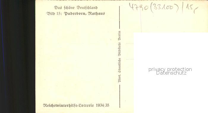 71840129 Paderborn Rathaus Das schoene Deutschland Bild 15 postalisch nicht gelaufen Erhaltung siehe scans KatCode: 11110005774032