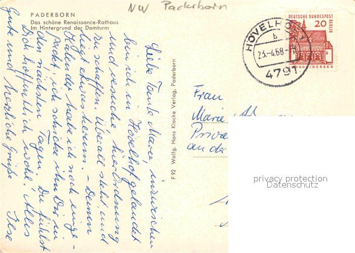 72907470 alte Postkarte Paderborn Rathaus Domturm postalisch gelaufen Erhaltung siehe scans [AndreD76] KatCode: 11110005774032