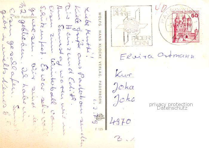 73813525 alte Postkarte Paderborn Rathaus Paderquellgebiet Am Markt Abdinghofkirche Rathausplatz postalisch gelaufen Erhaltung siehe scans [WerneD78] KatCode: 11110005774032