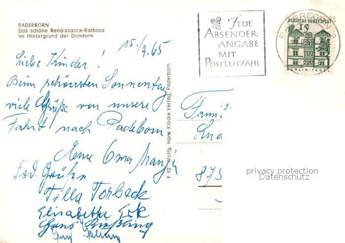 73145110 alte Postkarte Paderborn Renaissance Rathaus Brunnen Domturm postalisch gelaufen Erhaltung siehe scans [FriedD77] KatCode: 11110005774032