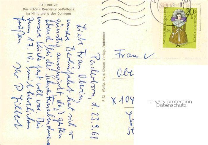72750746 alte Postkarte Paderborn Renaissance Rathaus Domturm postalisch gelaufen Erhaltung siehe scans [KathaD81] KatCode: 11110005774032