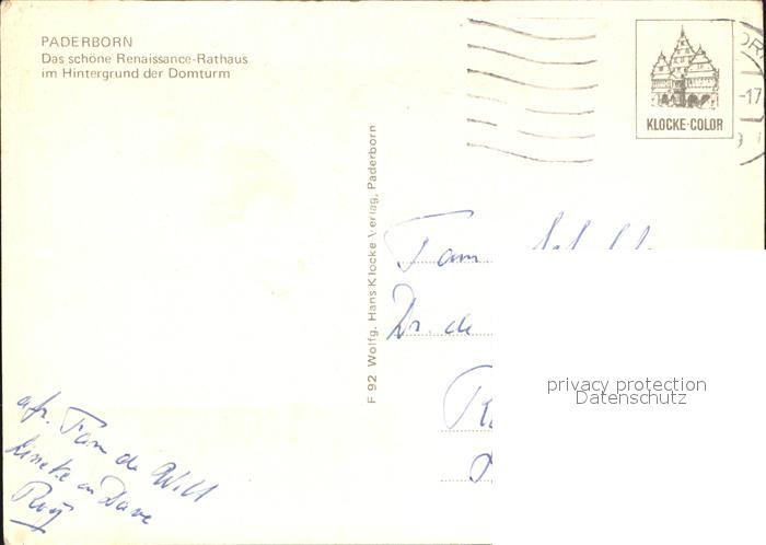 72449336 alte Postkarte Paderborn Renaissance Rathaus Domturm Brunnen postalisch gelaufen Erhaltung siehe scans KatCode: 11110005774032