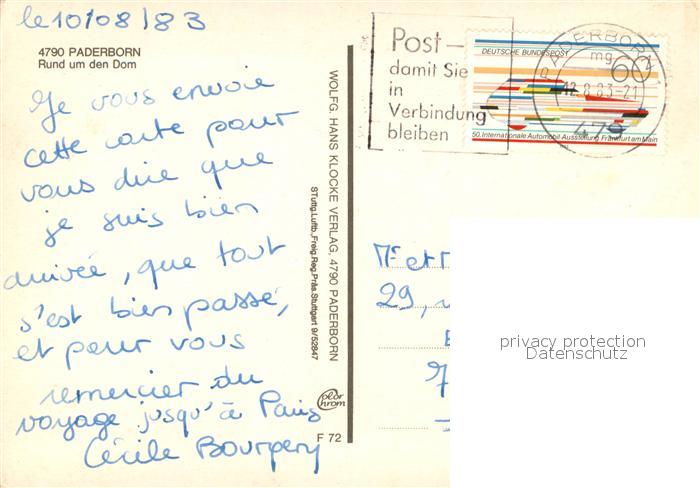 73684285 alte Postkarte Paderborn Rund um den Dom Fliegeraufnahme postalisch gelaufen Erhaltung siehe scans [FriedD77] KatCode: 11110005774032
