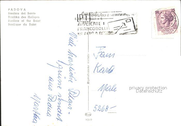 old postcard Padova Basilica del Santo postalisch gelaufen Erhaltung siehe scans