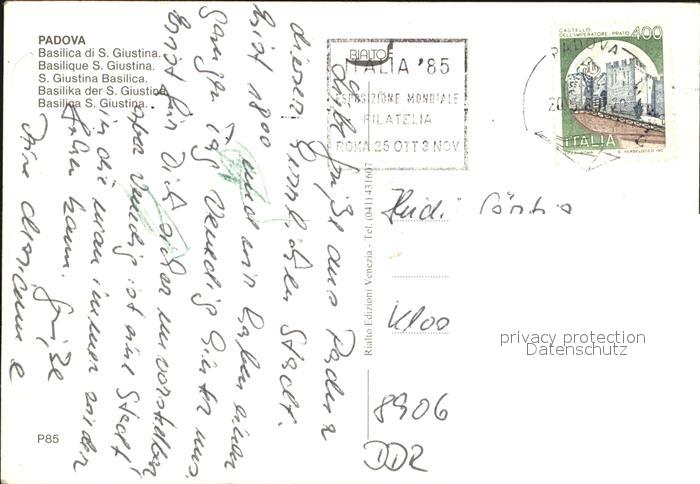 old postcard Padova Basilica di S. Giustina postalisch gelaufen Erhaltung siehe scans