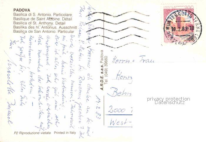 old postcard Padova Basilica di San Antonio Particolare postalisch gelaufen Erhaltung siehe scans [WerneD78]