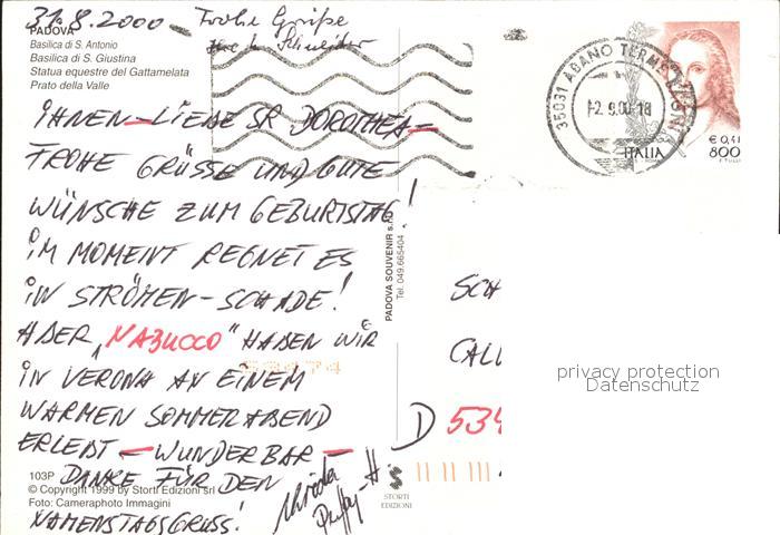 old postcard Padova Basilica Statua Prato della Valle postalisch gelaufen Erhaltung siehe scans