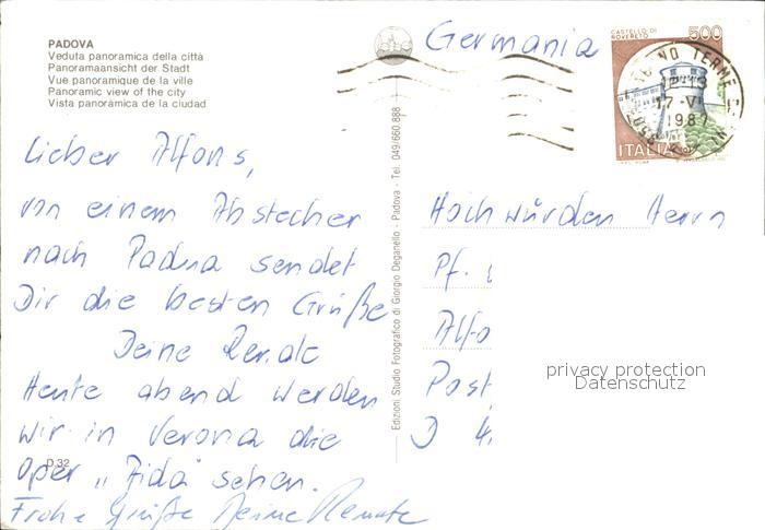old postcard Padova citta Stadt postalisch gelaufen Erhaltung siehe scans