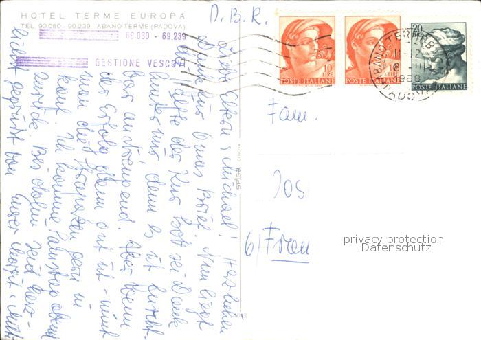 old postcard Padova Hotel Terme Europa postalisch gelaufen Erhaltung siehe scans