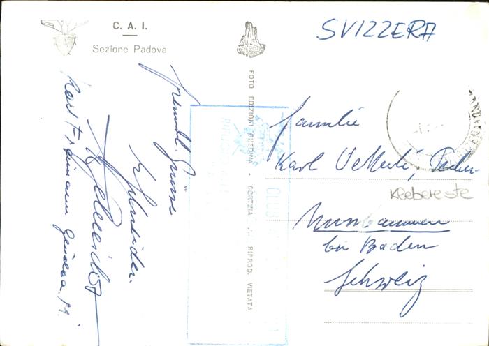 old postcard Padova Lavaredo postalisch gelaufen