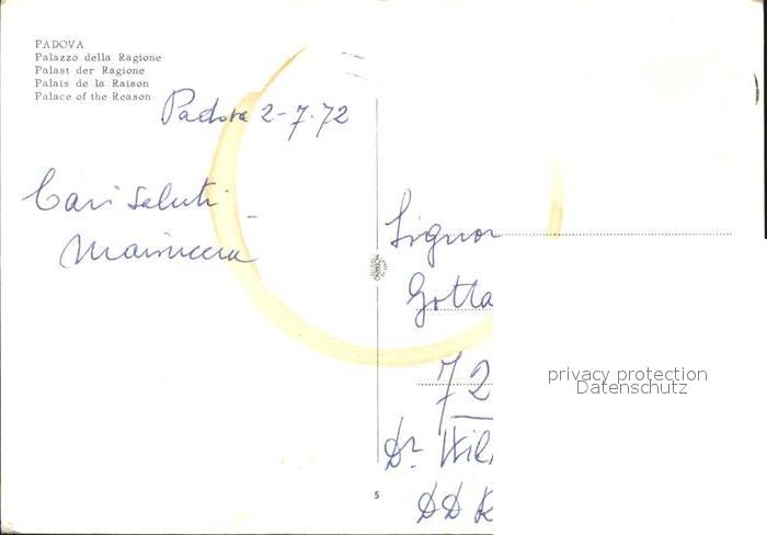 old postcard Padova Palast der Ragione postalisch gelaufen Erhaltung siehe scans