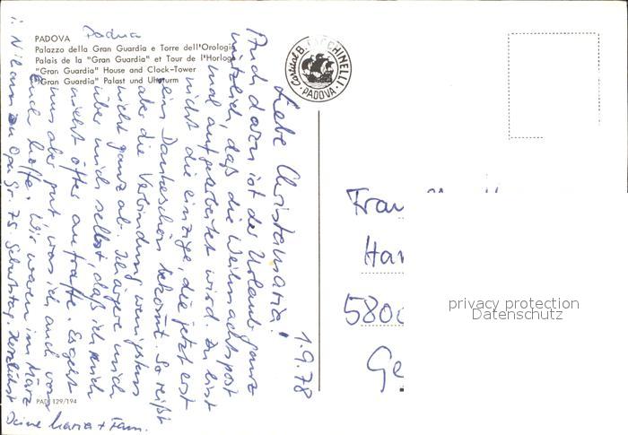 Padova Palazzo della Gran Guardia e Torre dell Orologio Palast Glockenturm postalisch nicht gelaufen Erhaltung siehe scans