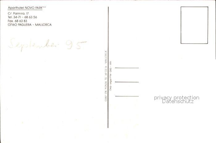 Paguera Mallorca Islas Baleares Aparthotel Nova Park postalisch nicht gelaufen Erhaltung siehe scans